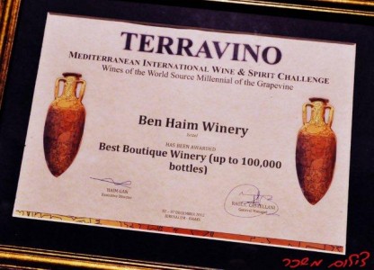 יקב בן-חיים נבחר ליקב הבוטיק הטוב ביותר בישראל, בתחרות היין הבינלאומית טרה וינו 2012