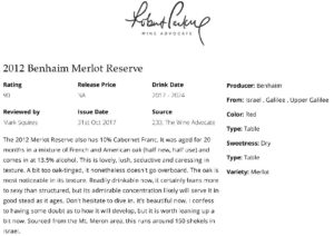 2012 Benhaim Merlot Reserve – Robert Parker Wine Advocate